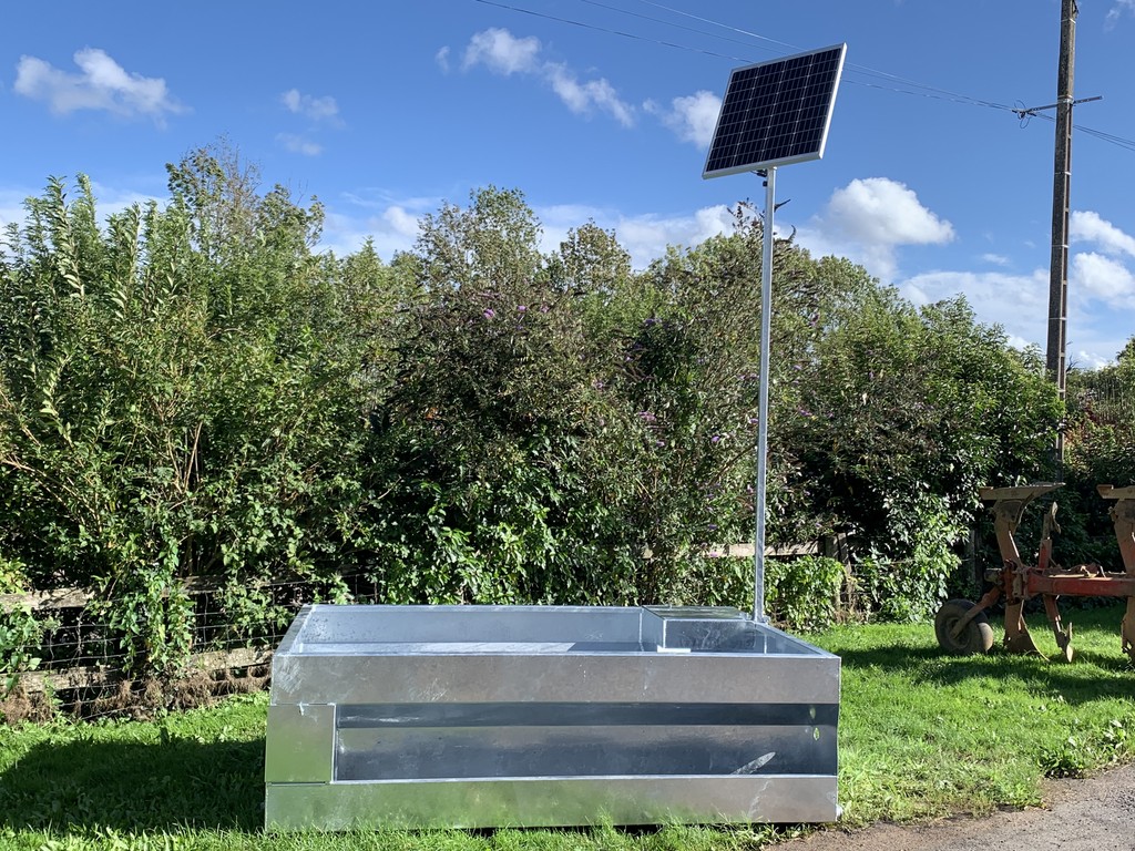 PRÊT À L'EMPLOI : Mise en place rapide, - de 5 min, compartiments petits animaux avec flotteur intégré, panneau solaire 90 W (12/24V, pompe immergée (0.4m³/h), mât rabattable, tuyau et cablâge, onduleur, batterie